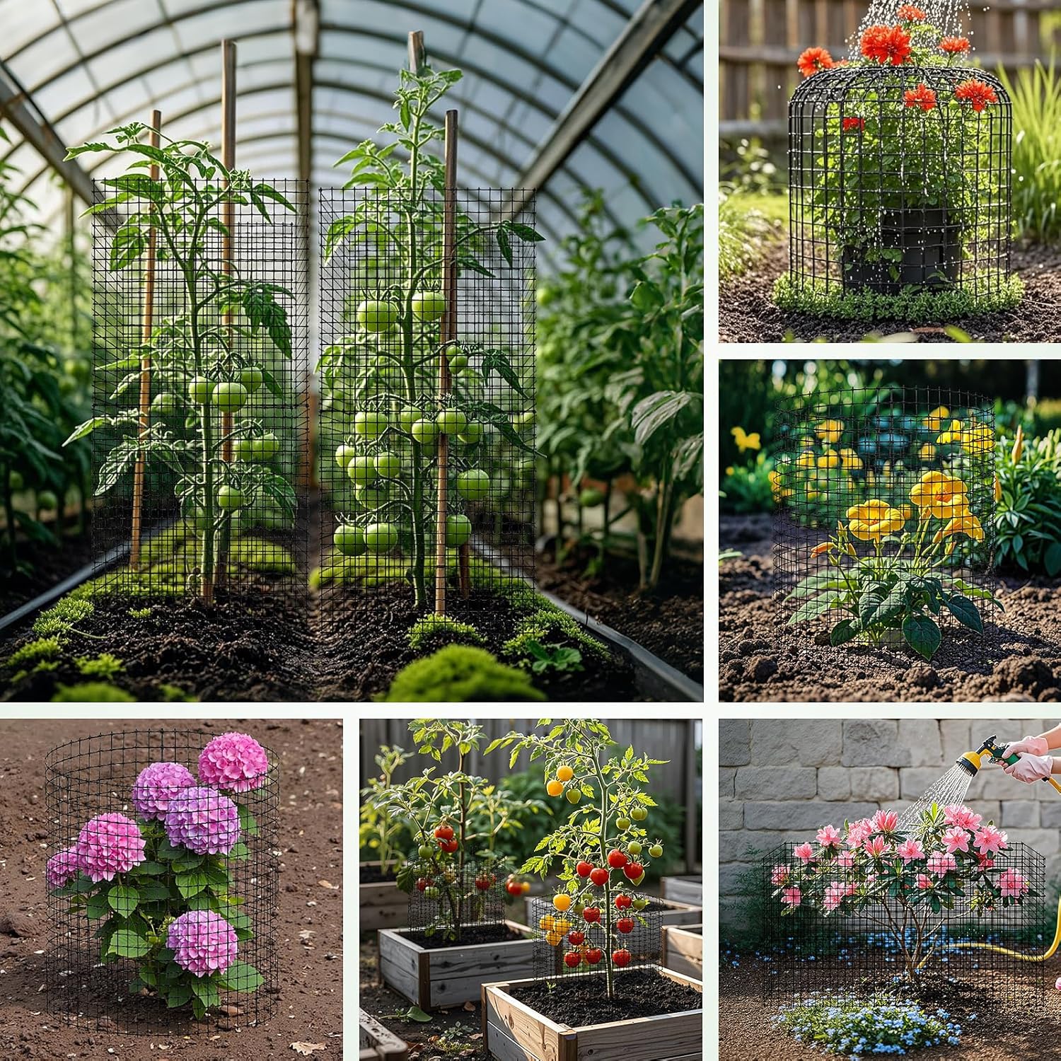 - DIY MULTI-SHAPE PLANT PROTECTION CAGE: You can assemble 3 pieces wire mesh into a cylindrical plant cage, or 4 pieces wire mesh into a rectangular protection cage, or even more mesh into a larger plant wire cage to protect your plants from harm, use the wire ties included in the package to tie up, circle the plant and then fix it with metal stakes, very simple to install and easy to use.