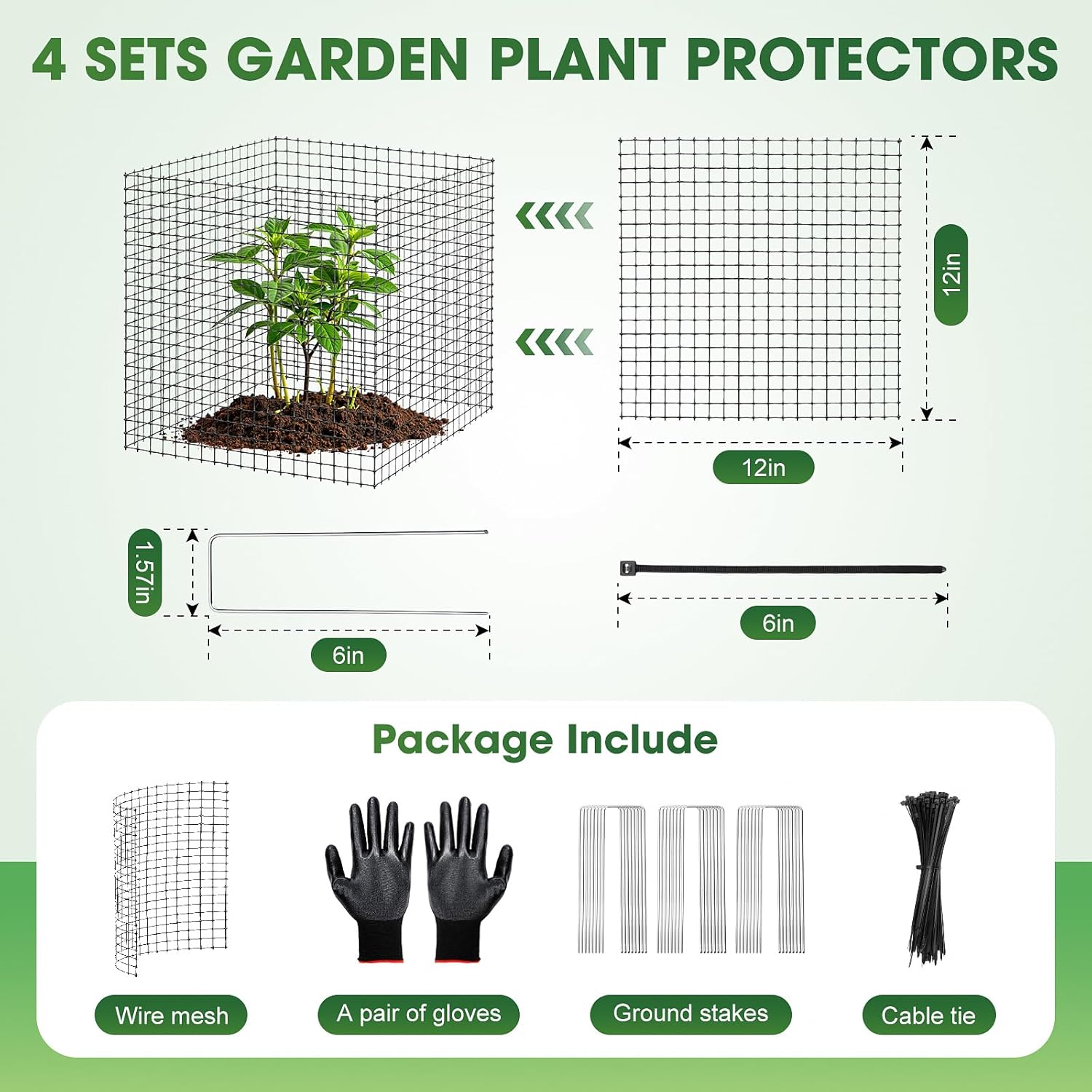 - PACKAGE INCLUDE: You will receive 30Pcs 12x12 inch square metal plant protection mesh, 30 fixing ground stakes, 100 black cable tie, a pair of gloves and 1 instruction manual, this complete kit allows you to customize one or more plant cages for your outdoor plants.Our metal garden protection cage will effectively protect your plants from small animals and provide a safe space for your plants to grow.