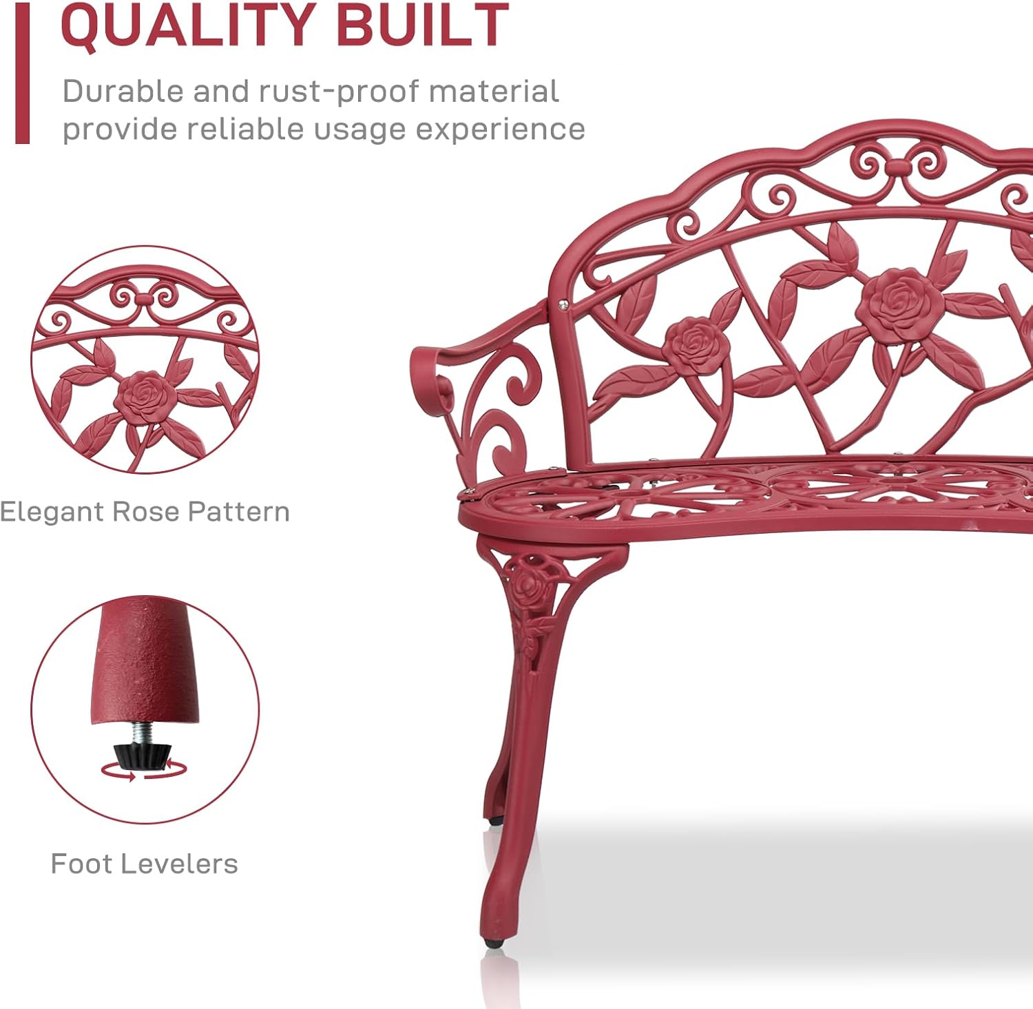 - Sturdy & Safe Build: Reinforced with cast iron supports for 500 lbs weight capacity, plus smooth screw caps for added safety. The decorative backrest design adds both strength and timeless charm.