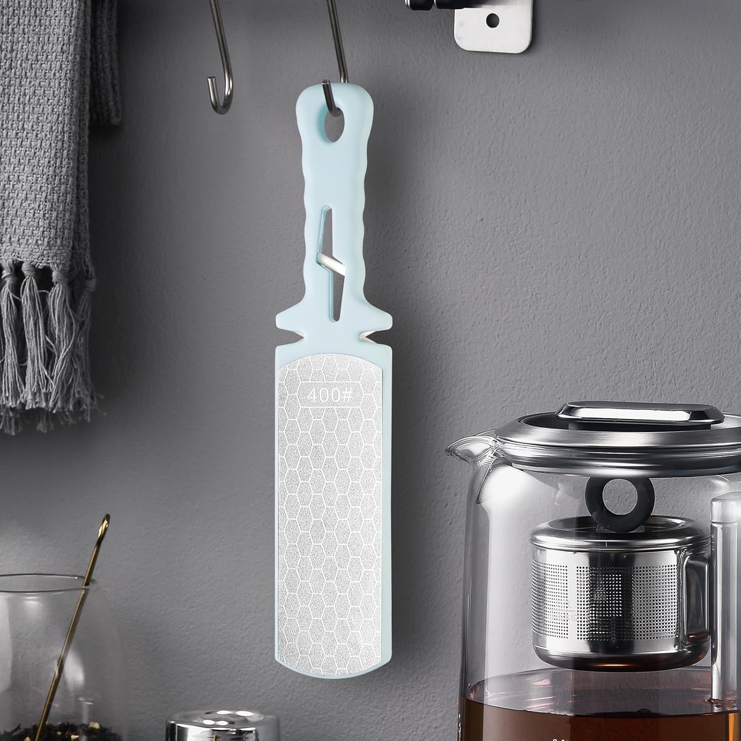 - Portable Size: The size of the 5 in 1 knife sharpener is about 11x2.17 Inches (L x W), with a hanging hole,It's convenient to storage and save space. What a perfect kitchen gift for your family & friends!