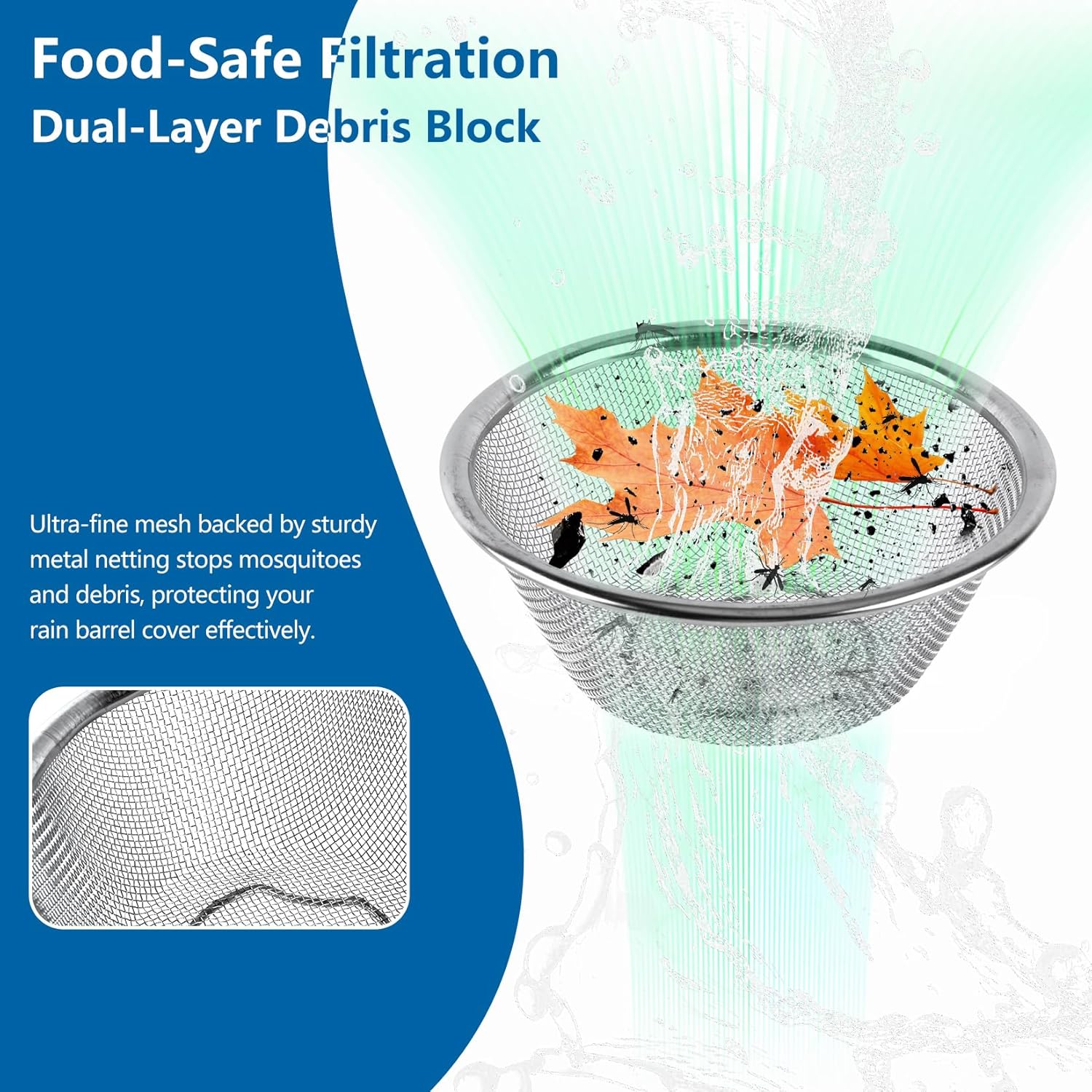- 【Food-Grade Material Safety】Features food-contact SUS304 stainless steel mesh + aluminum frame, rust-proof for purified water in your rain water collection system kit.