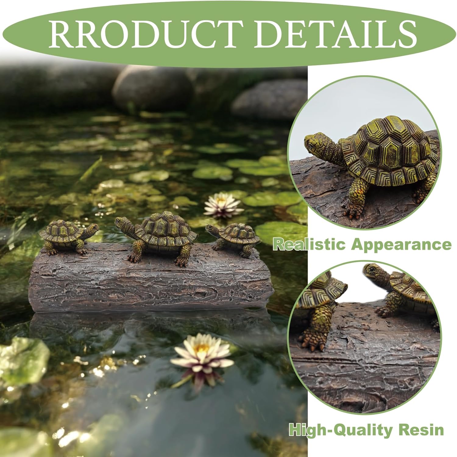 - 【Realistic Appearance】The decoration features a design of three turtles standing on a resin - made log. The detailed textures and natural - looking colors make it seem like real turtles resting on a log, adding a touch of nature and charm to your space.
