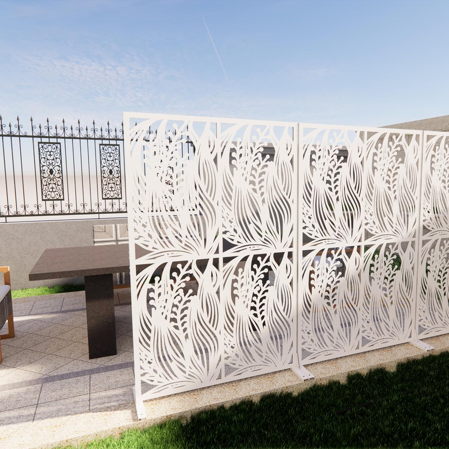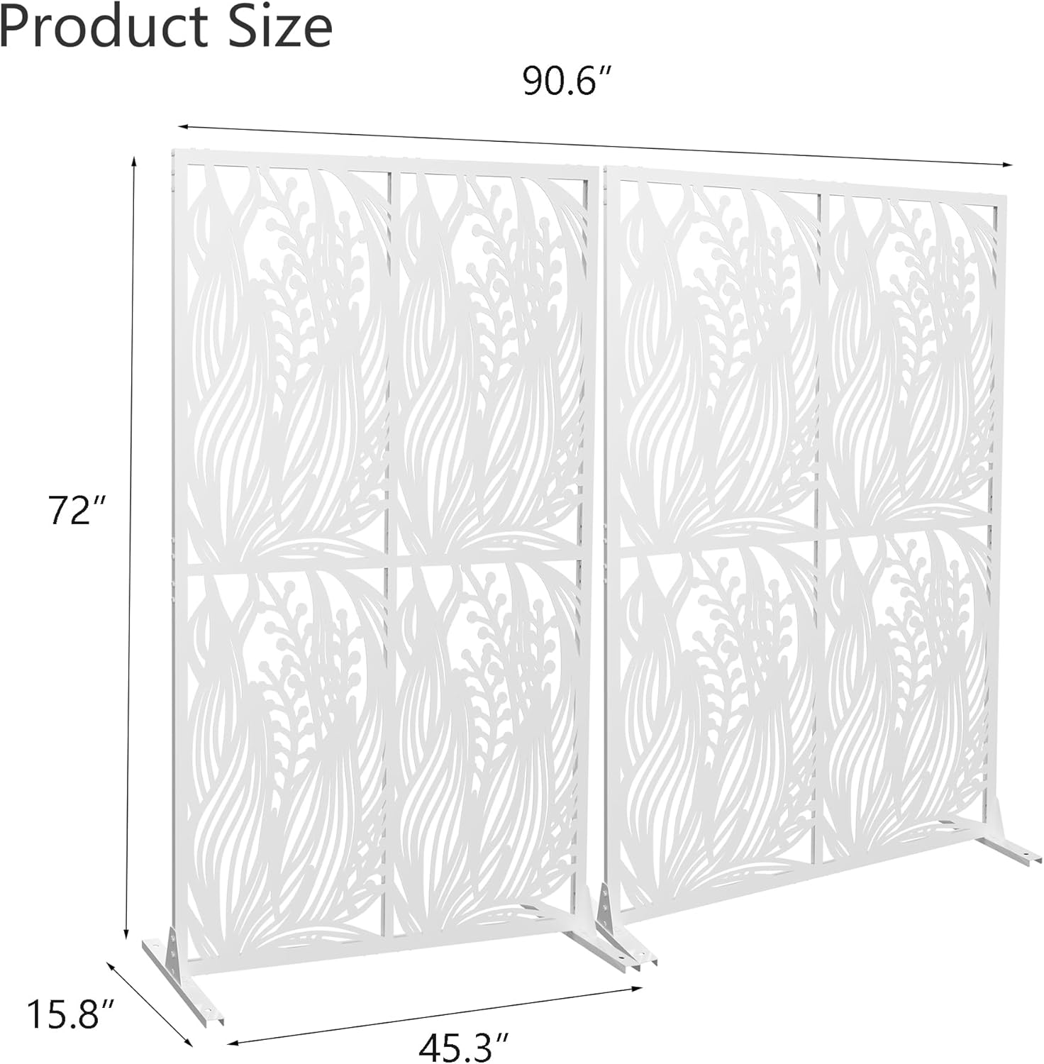 Metal Privacy Screen Outdoor W3.8Ft x H 6Ft Patio Privacy Panels Free Standing Divider Decorative 2 Pack for Balcony Garden Room Lawn Deck(2, White Leaf)