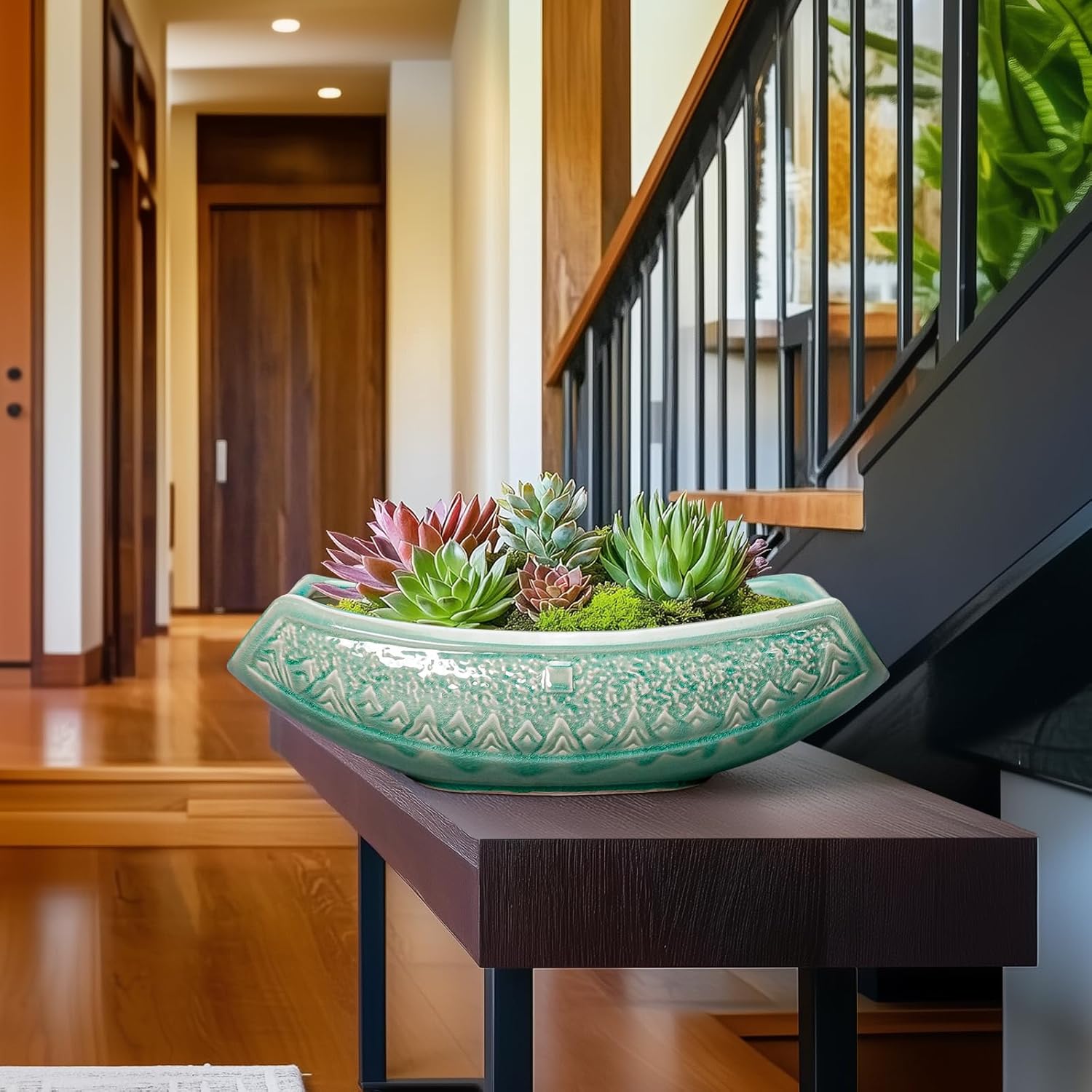 - Elegant Aesthetic: Featuring a beautiful lake green ice crackle glaze finish and 3D relief pattern, this bonsai pots combines practicality with style, suitable for table, desk, windowsill, shelves, living room, bedroom, bathroom, porch, study, office, patio, balcony, zen garden, any indoor or outdoor space