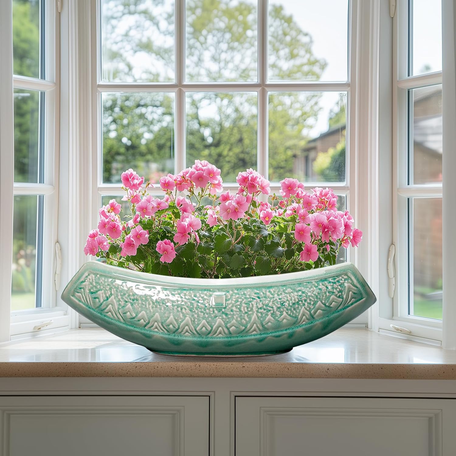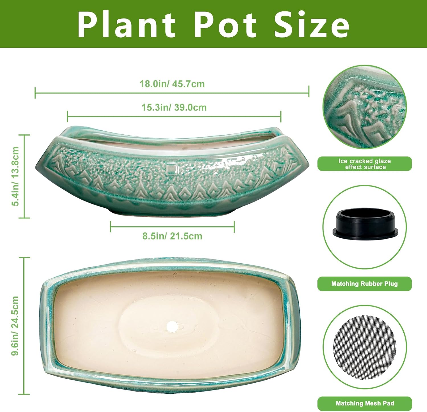 - Sufficiently Large Size: Our ceramic plant pot is 18.0''/45.7cm X 9.6''/24.5cm X 5.4''/13.8cm. Packaging Includes: a ceramic planter, drainage plug, and mesh pad. Thoughtfully packaged to ensure your bonsai tree pot arrives in complete condition