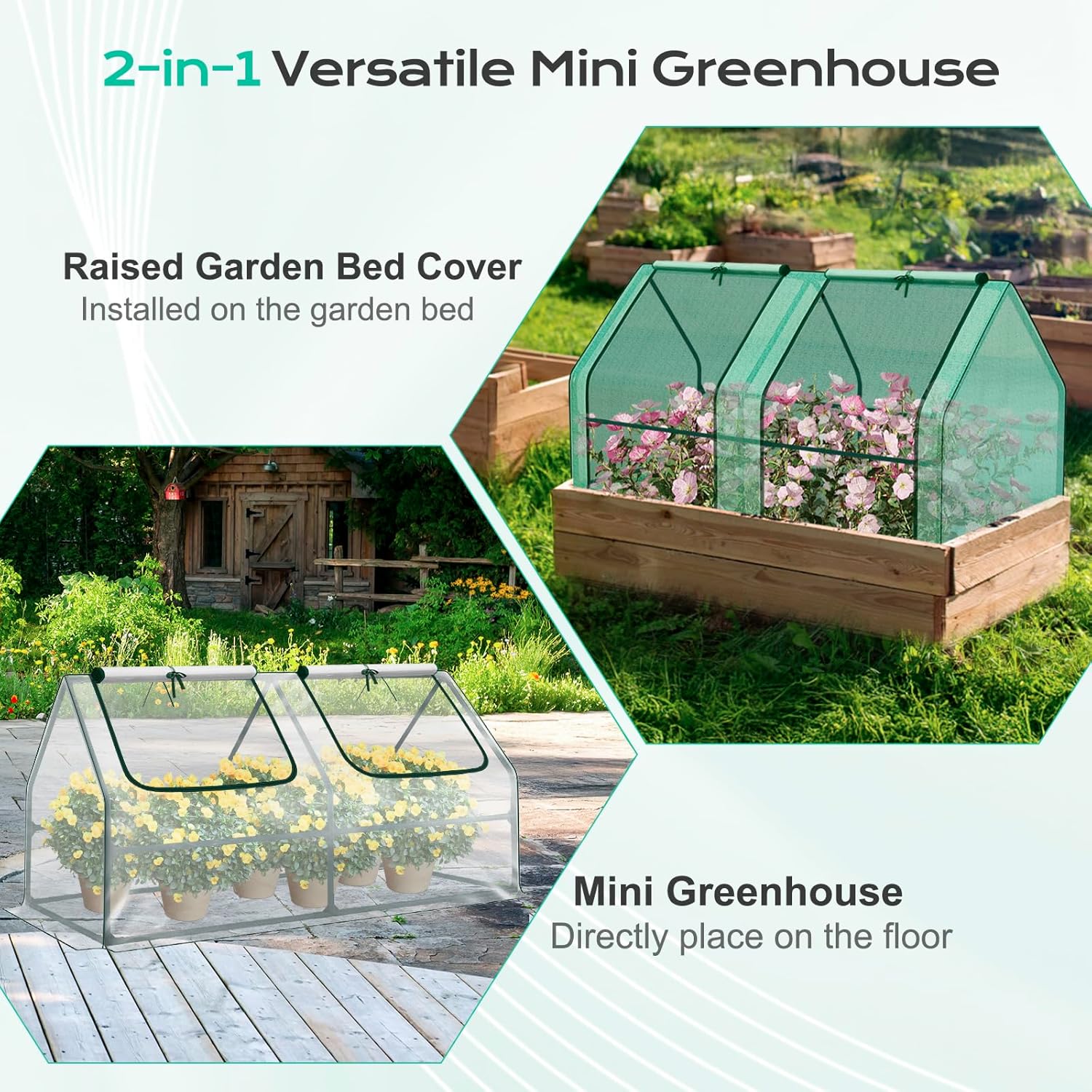 BPS 6x3x3 ft Mini Garden Greenhouse with Dual Covers (PE & PVC) Waterproof, UV-Protected Portable Grow Tent for Flowers, Vegetables, and Herbs in All Seasons