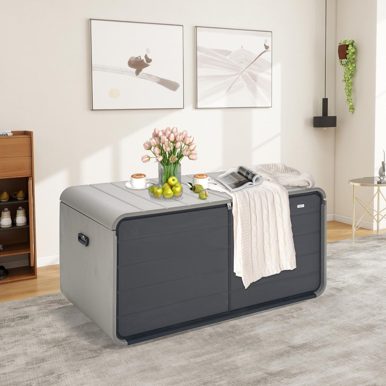 - Multi-Functional & Stylish – More than just a storage solution, this versatile deck box doubles as a sturdy bench or side table. Its sleek design blends seamlessly into your patio, deck, or garden while offering extra seating or surface space when needed.