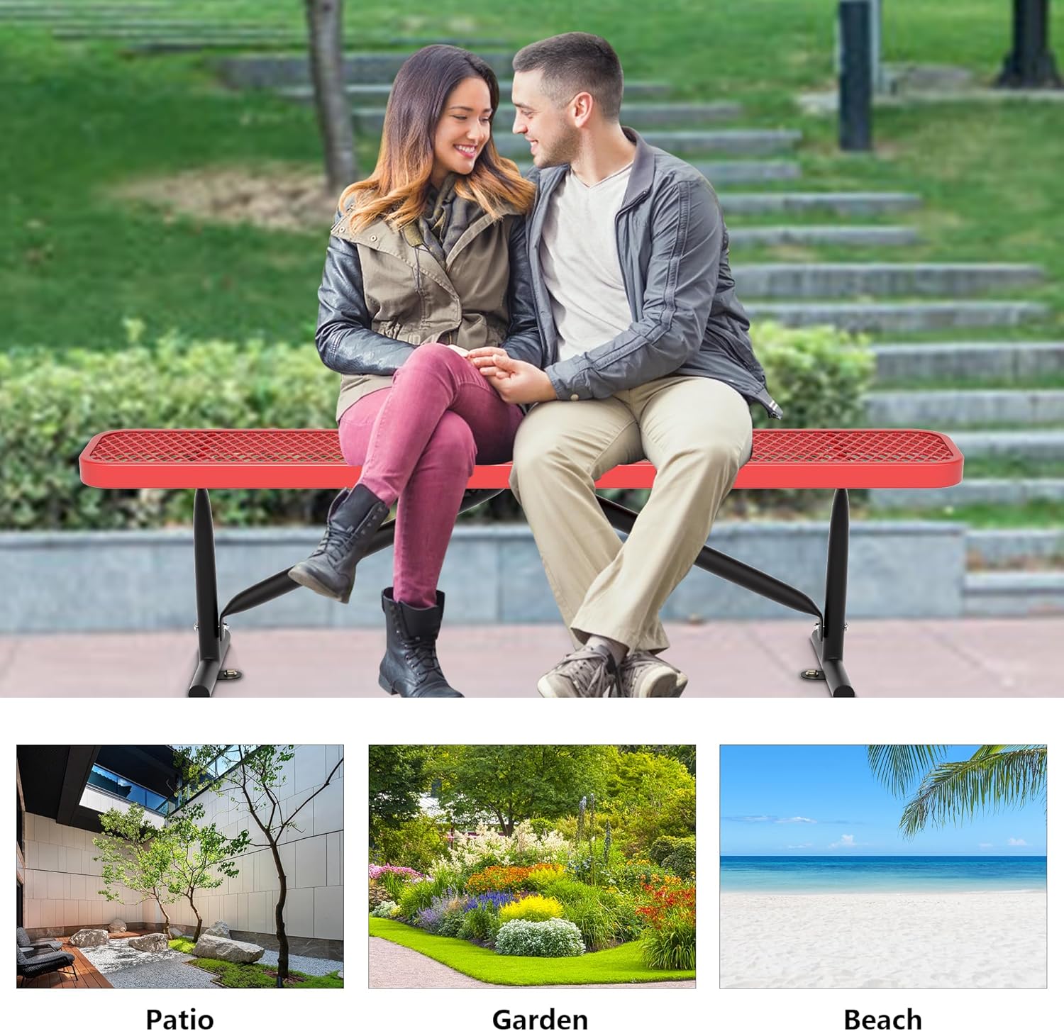 - Widely Applicable: Our metal park benches have strong weather resistance and durability, making them suitable for gardens, backyards, beaches, parks, commercial venues, public places, and more.
