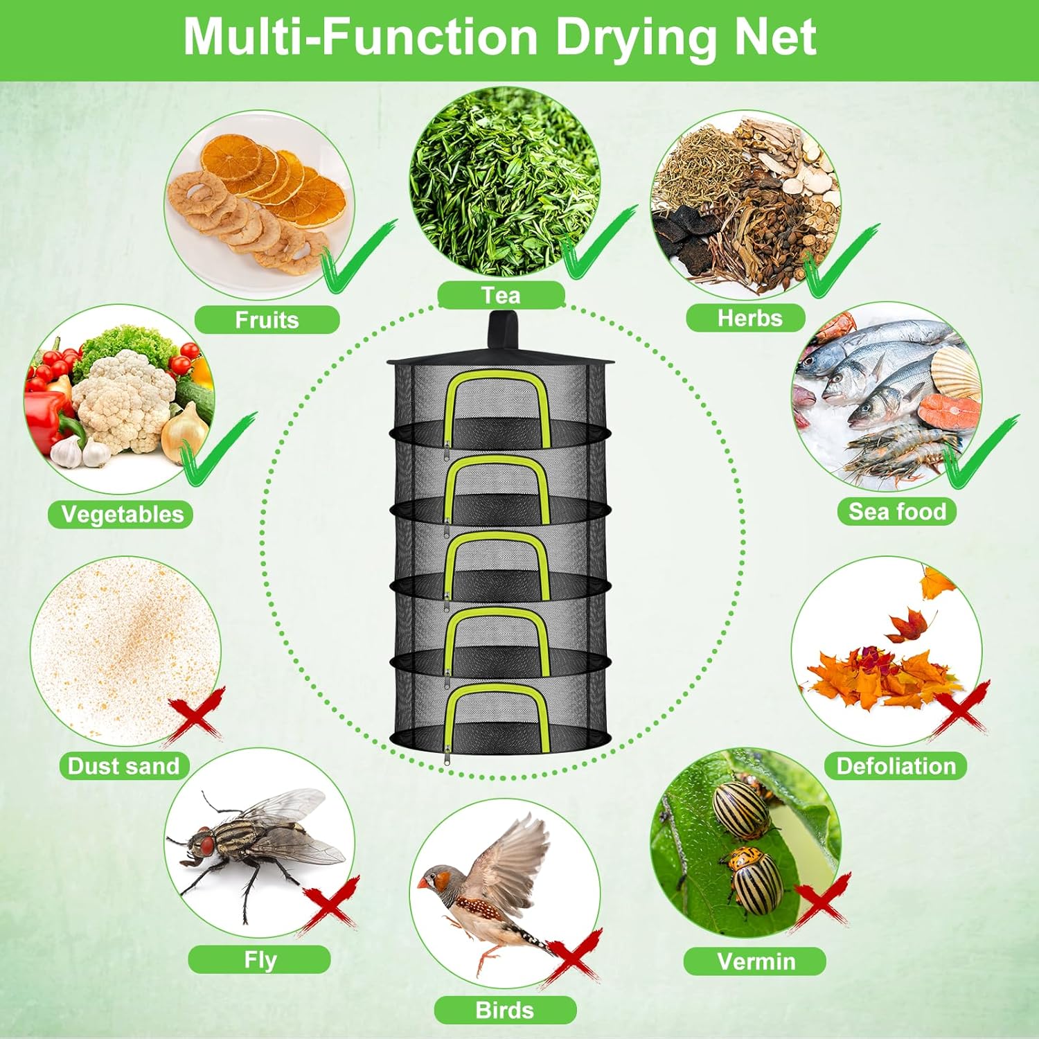 - Essential Herb Drying Rack: The herb drying hanging mesh is made of lightweight nylon mesh, which can directly contact food. Multi layer separated drying net with sufficient space to accommodate a large amount of herbs. The overall design ensures that herbs do not overlap, thereby achieving maximum air circulation