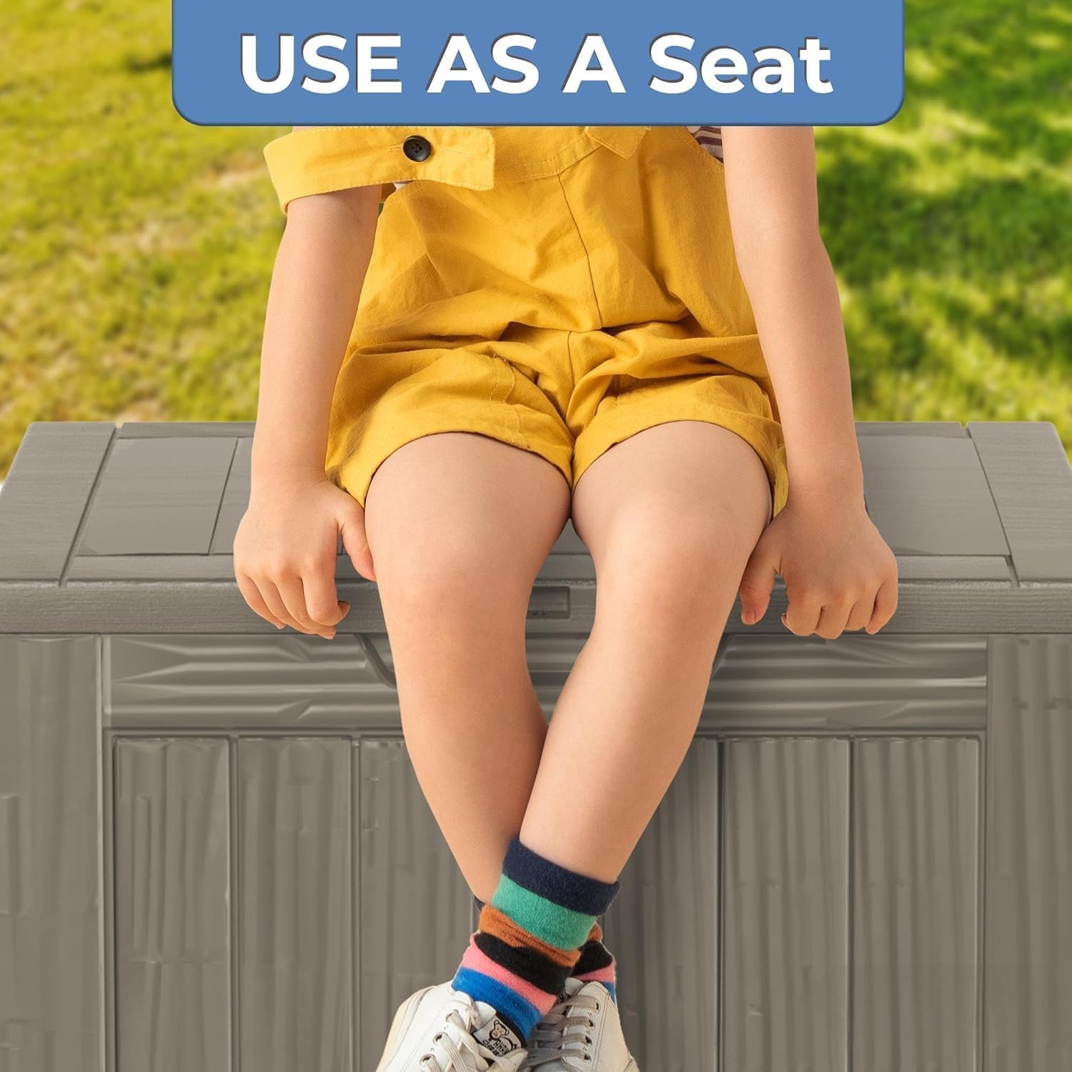 - Large Capacity: This 50-gallon deck box offers ample storage space for your outdoor accessories, and it has a 300-pound weight capacity and can be used as a separate patio seat or indoor table.