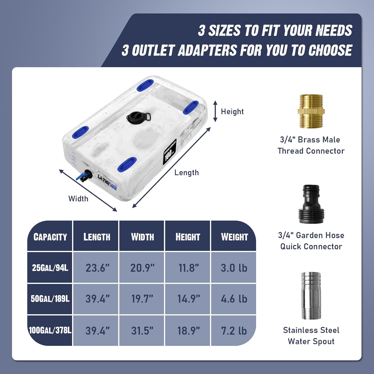 - LARGE CAPACITY WATER BLADDER: The LATHEVEE is a water containment system that holds up to 50 gallons/189L of water to prepare for an emergency. It can assist you in organizing your garden, watering plants, agricultural irrigation, camping, hunting, hiking,for emergency water for outdoor activities or off-grid living.