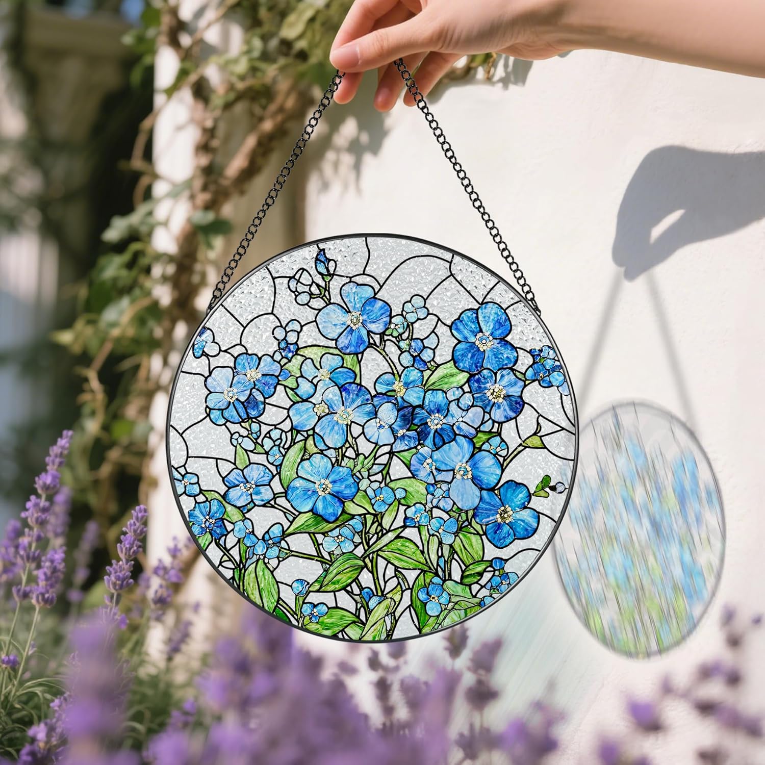 Stained Glass Window Hanging, 8 Inch Forget Me Not Stained Glass Suncatcher, Window Hanging Decor, Flower Sun Catchers, Gifts for Flower Lover, Birthday Gifts for Lover, Friend, Family, Teacher