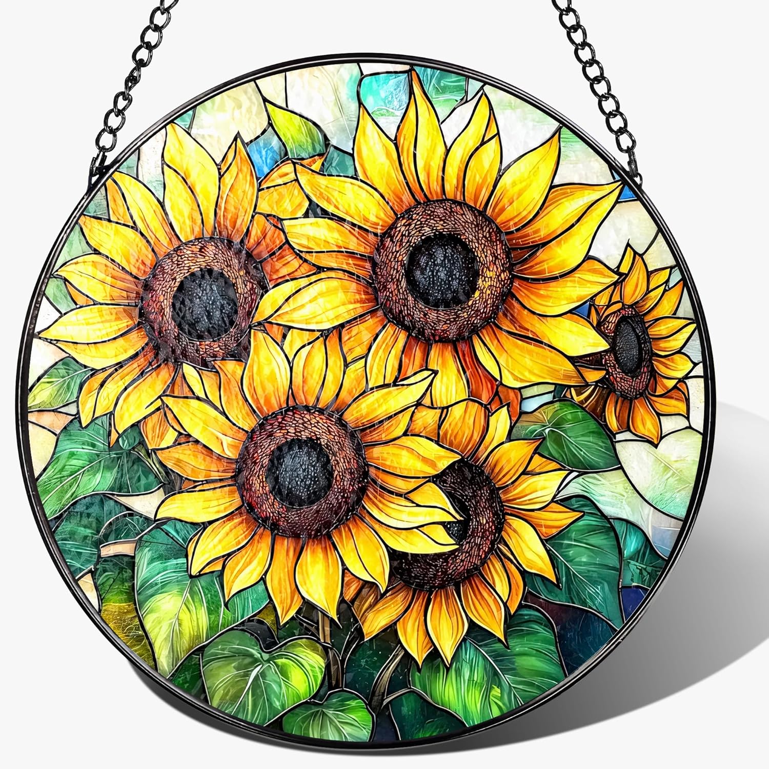 Stained Glass Window Hanging, 8 Inch Sunflower Stained Glass Suncatcher, Suncatchers for Windows Hanging, Home Decor for Window, Teacher Gift, Birthday Gift, Sunflower Gifts for Women, Friend