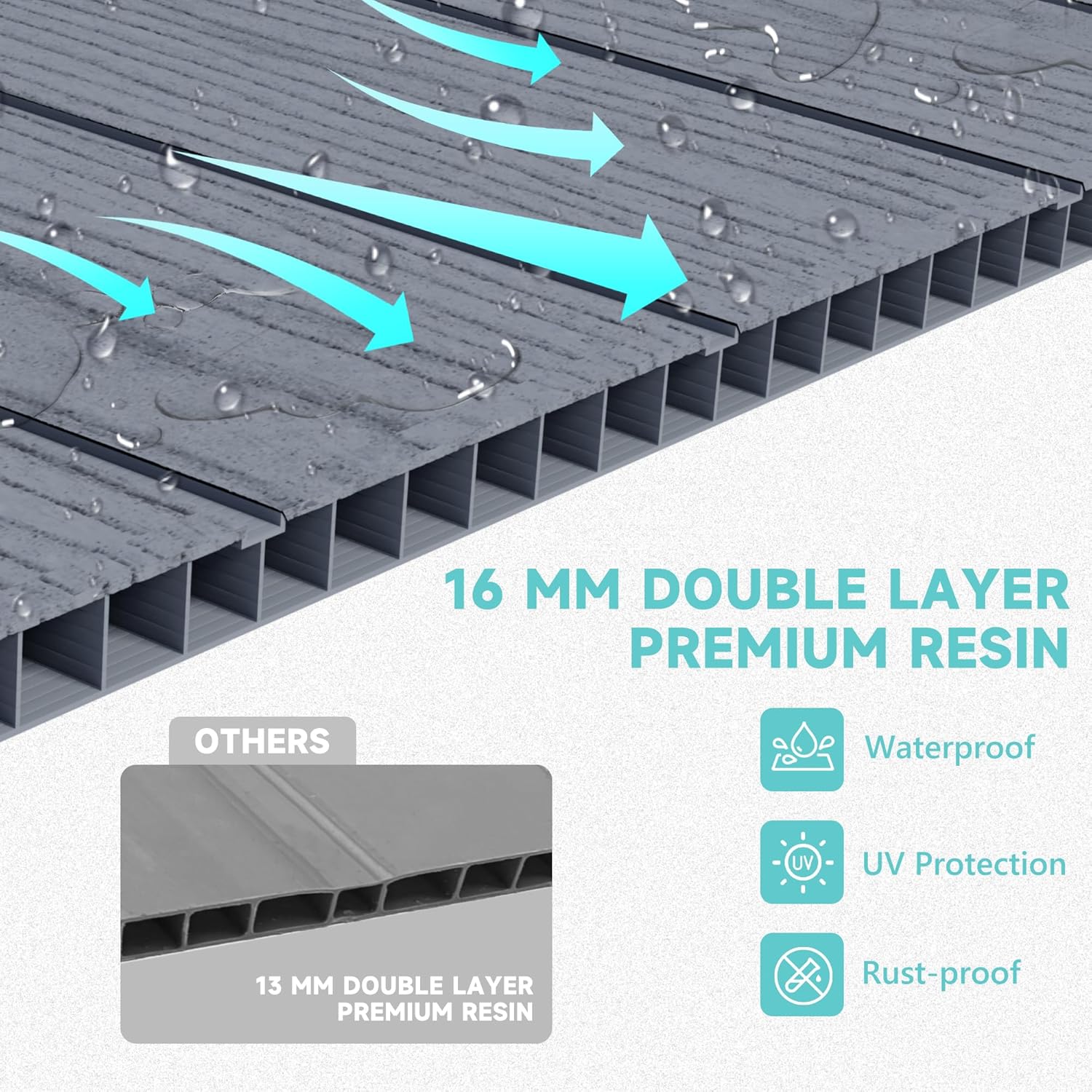 - Heavy-Duty Resin Construction – Crafted from high-quality resin, the shed offers exceptional durability and weather resistance, standing strong against UV rays, moisture, and temperature swings.