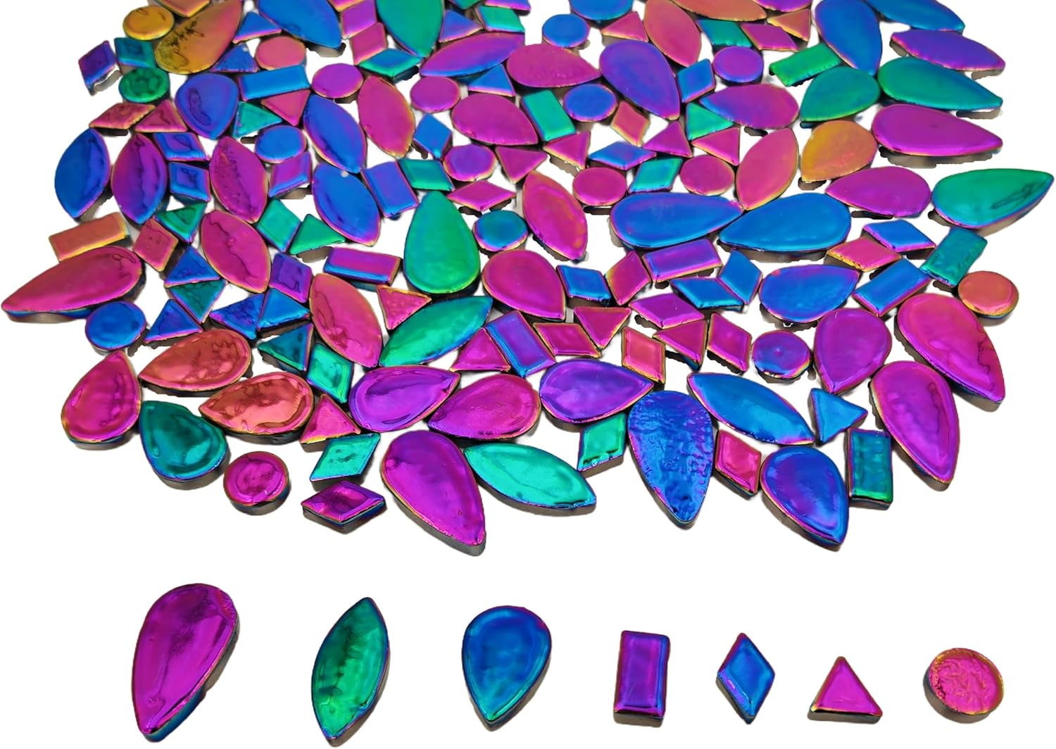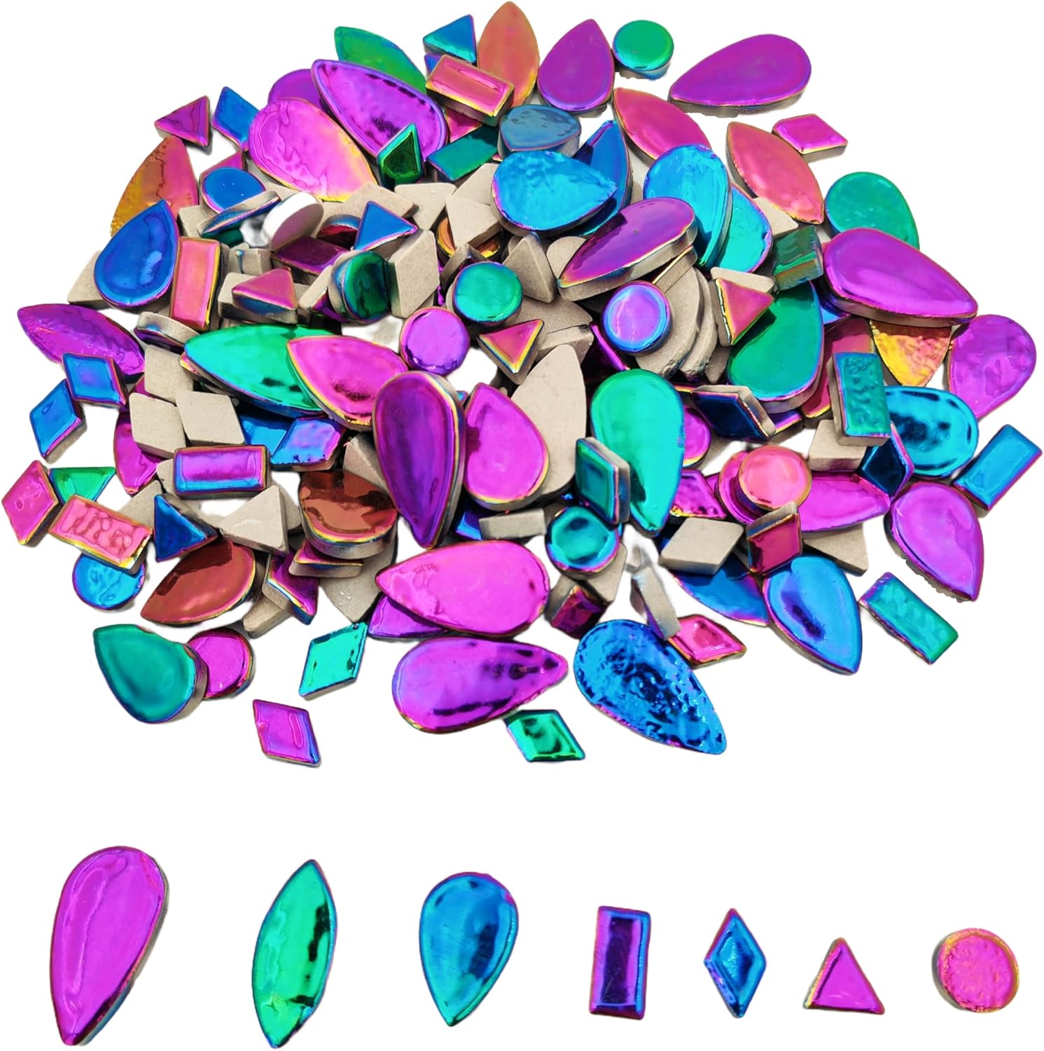 - 7 Size Mix: Big Raindrop Mosaic Tiles Size: 19 x 35 mm/0.75*1.37inch;Small Raindrop Mosaic Tiles Size: 18 x 28 mm/0.7*1.1 inch; Bamboo Leaf Mosaic Tiles Size: 32 x 15 mm /1.26 * 0.59 inch;Round Mosaic Tiles Dia.:15mm/0.59 inch;;Diamond Mosaic Tiles Size:10 x 20mm / 0.39* 0.78 inch;Triangle Mosaic Tiles Size:15 x 15 mm/ 0.59*0.59 inch;