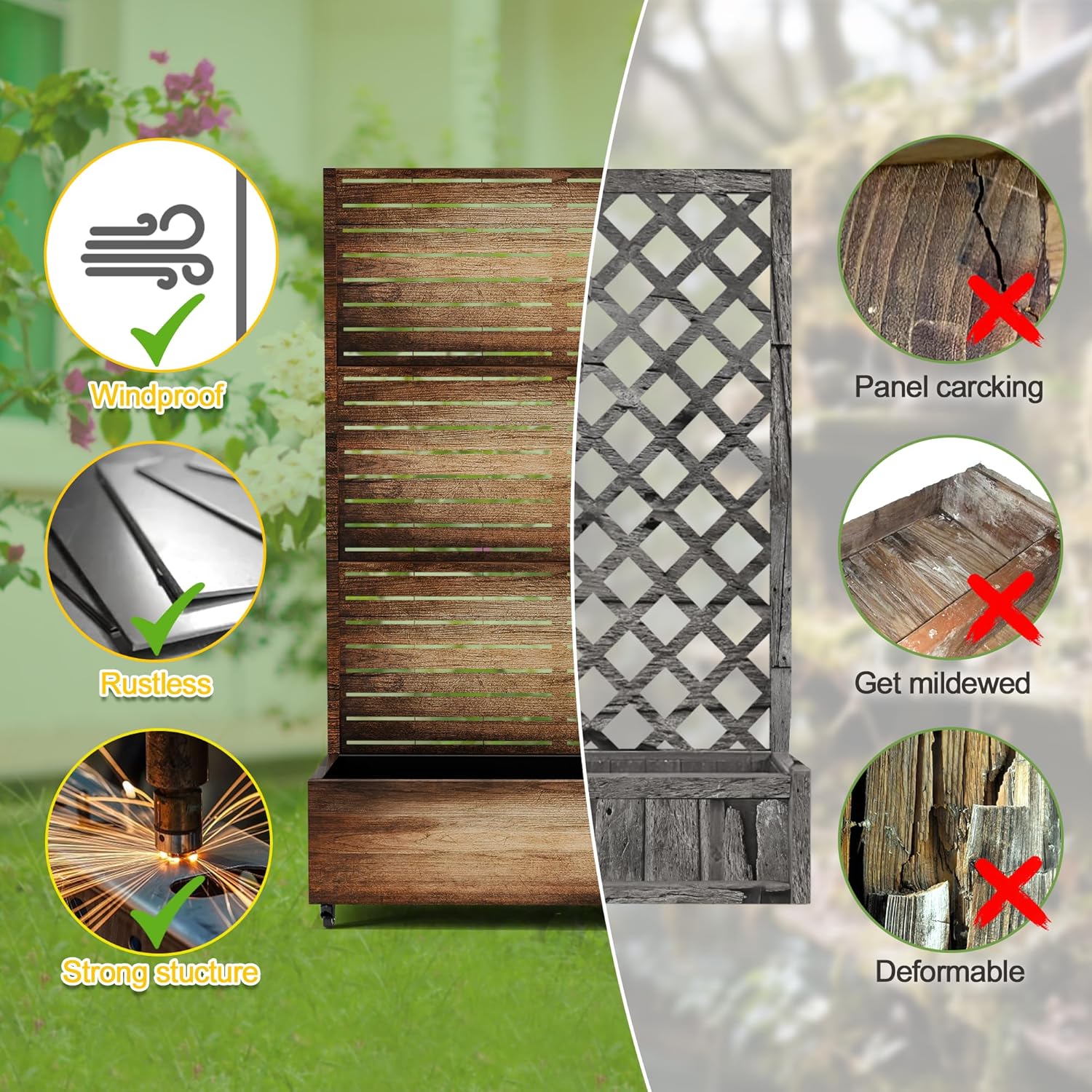 - 【Space-Saving Design】The combination of the planter box and trellis saves space while offering an attractive garden bed. This space-efficient solution is ideal for gardening enthusiasts facing space constraints, allowing them to cultivate beautiful gardens even in limited areas.