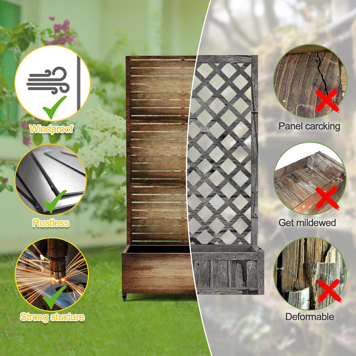 - 【Space-Saving Design】The combination of the planter box and trellis saves space while offering an attractive garden bed. This space-efficient solution is ideal for gardening enthusiasts facing space constraints, allowing them to cultivate beautiful gardens even in limited areas.