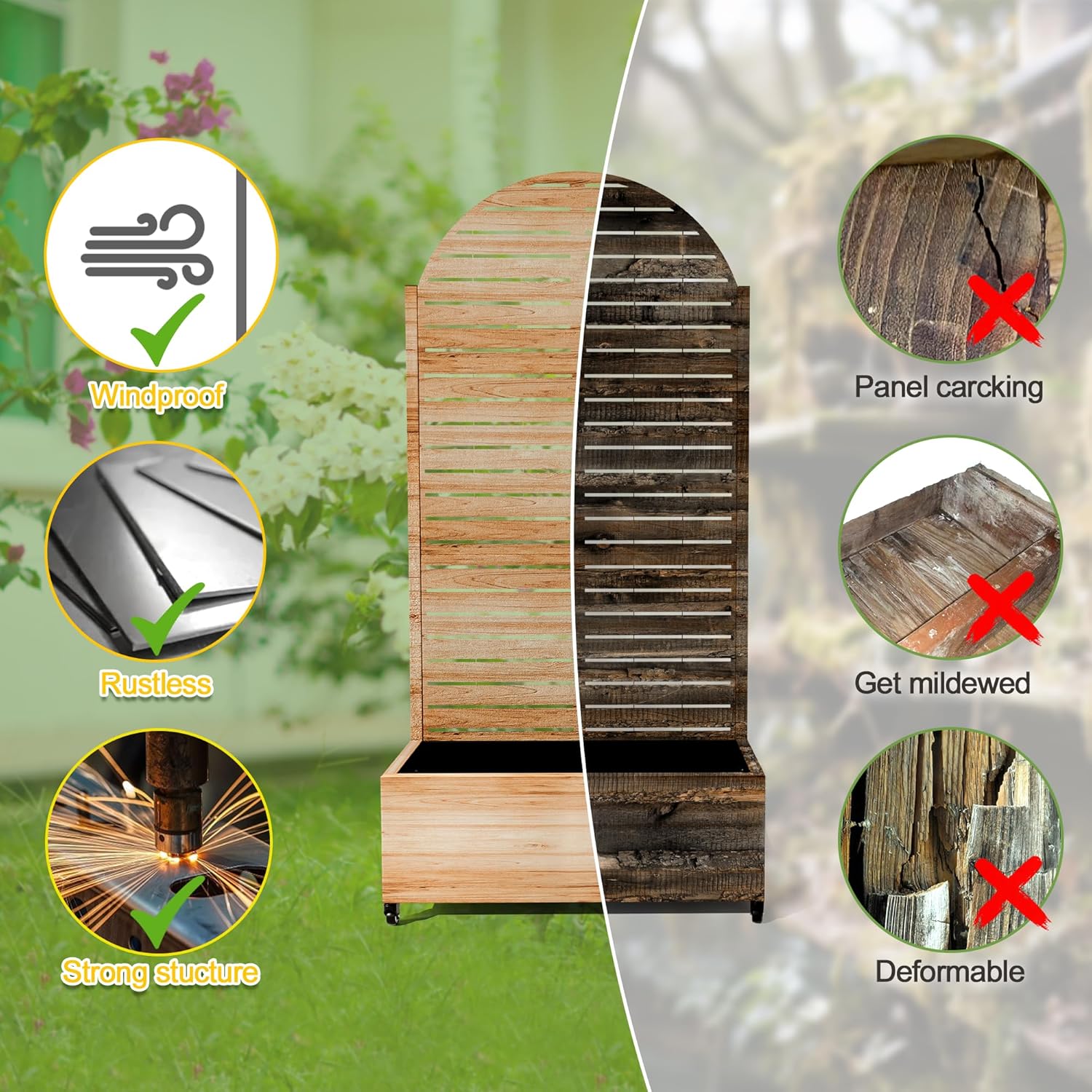 - 【Space-Saving Design】The combination of the planter box and trellis saves space while offering an attractive garden bed. This space-efficient solution is ideal for gardening enthusiasts facing space constraints, allowing them to cultivate beautiful gardens even in limited areas.