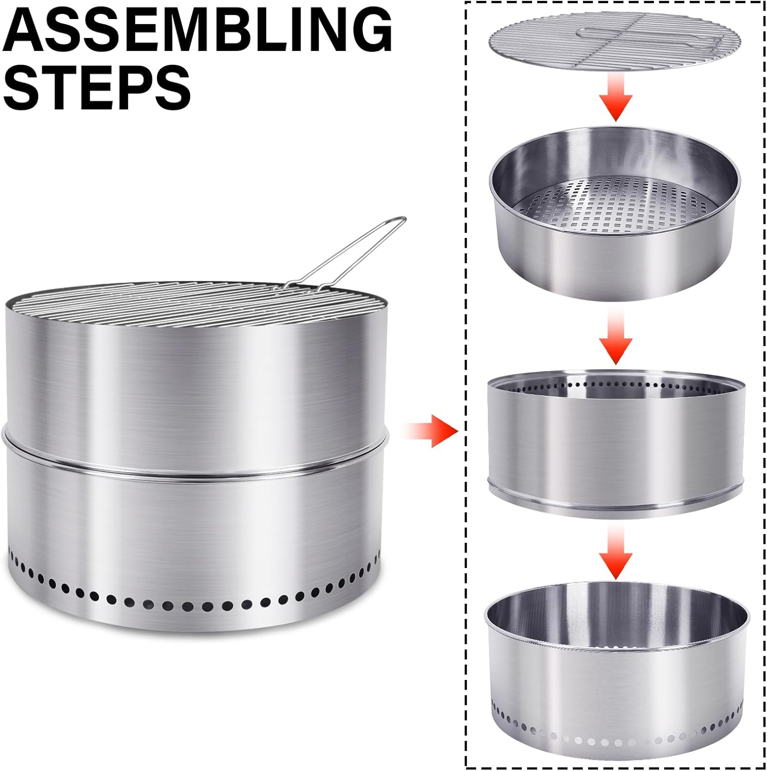 - Smokeless Design with Grill Function: Double wall construction with strategically placed vent holes creates secondary combustion, dramatically reducing smoke while the included grill grate allows you to cook meals over the clean-burning flame - no more smoky clothes or hair