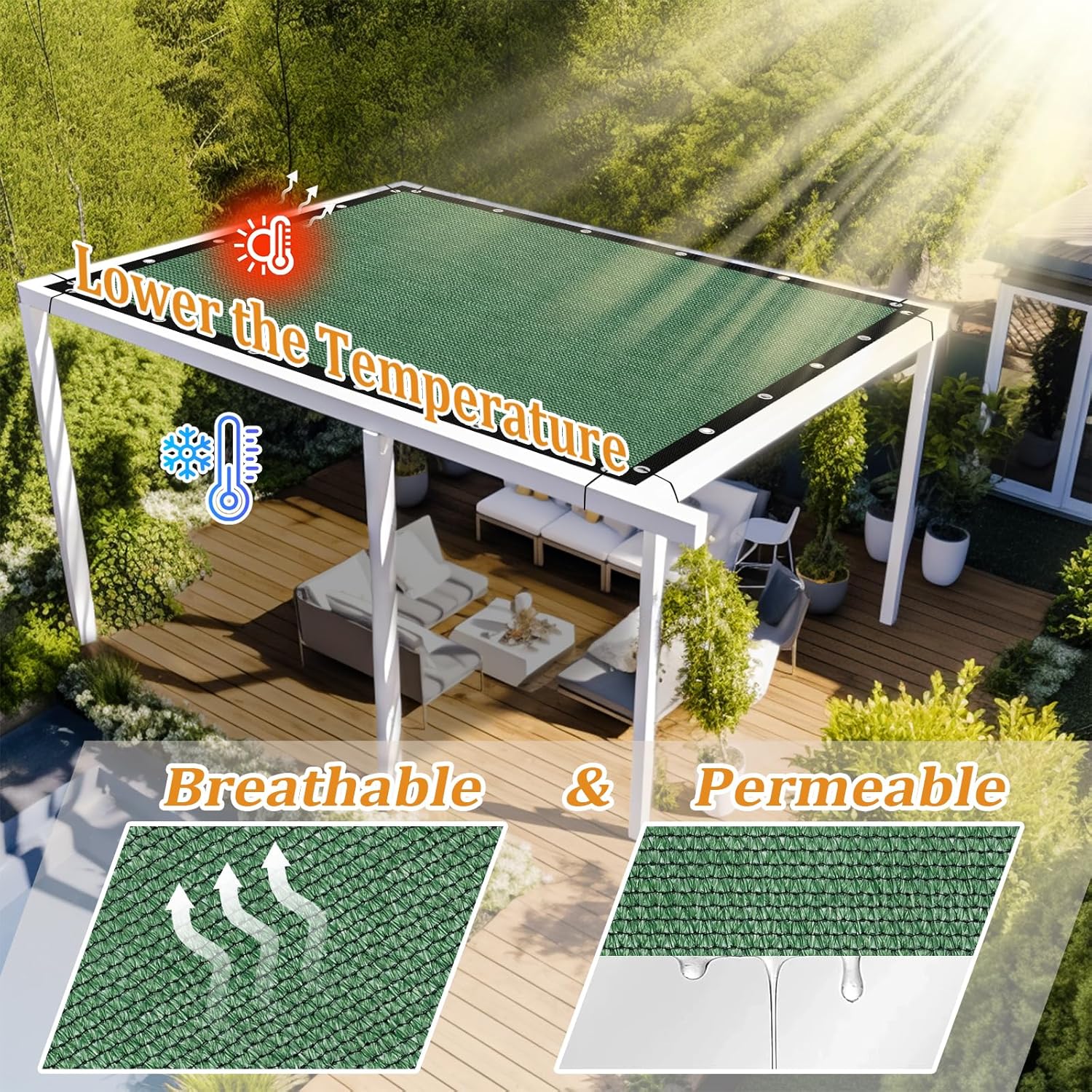 - [Easy to Install] With included grommets on each sides every 56 ft space and fixing accessories, you can easily attach the pergola shade cover to various structures while ensuring uniform stress. Whether you're looking to cover your backyard, carport, or playground, you can have it up and providing shade in no time.