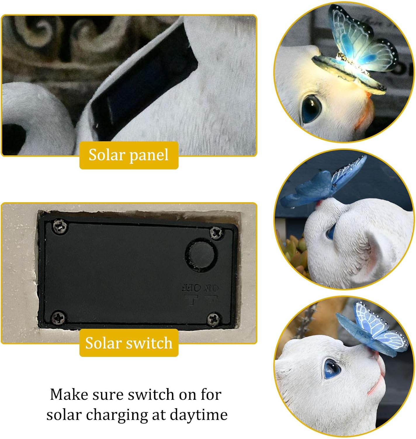 - ▶ Solar Light - Cat garden decor with solar powered, easy to use, can automatically charge the solar energy, light up at night.Energy Efficiency & smart models:with solar-powered, energy saving and energy efficiency.