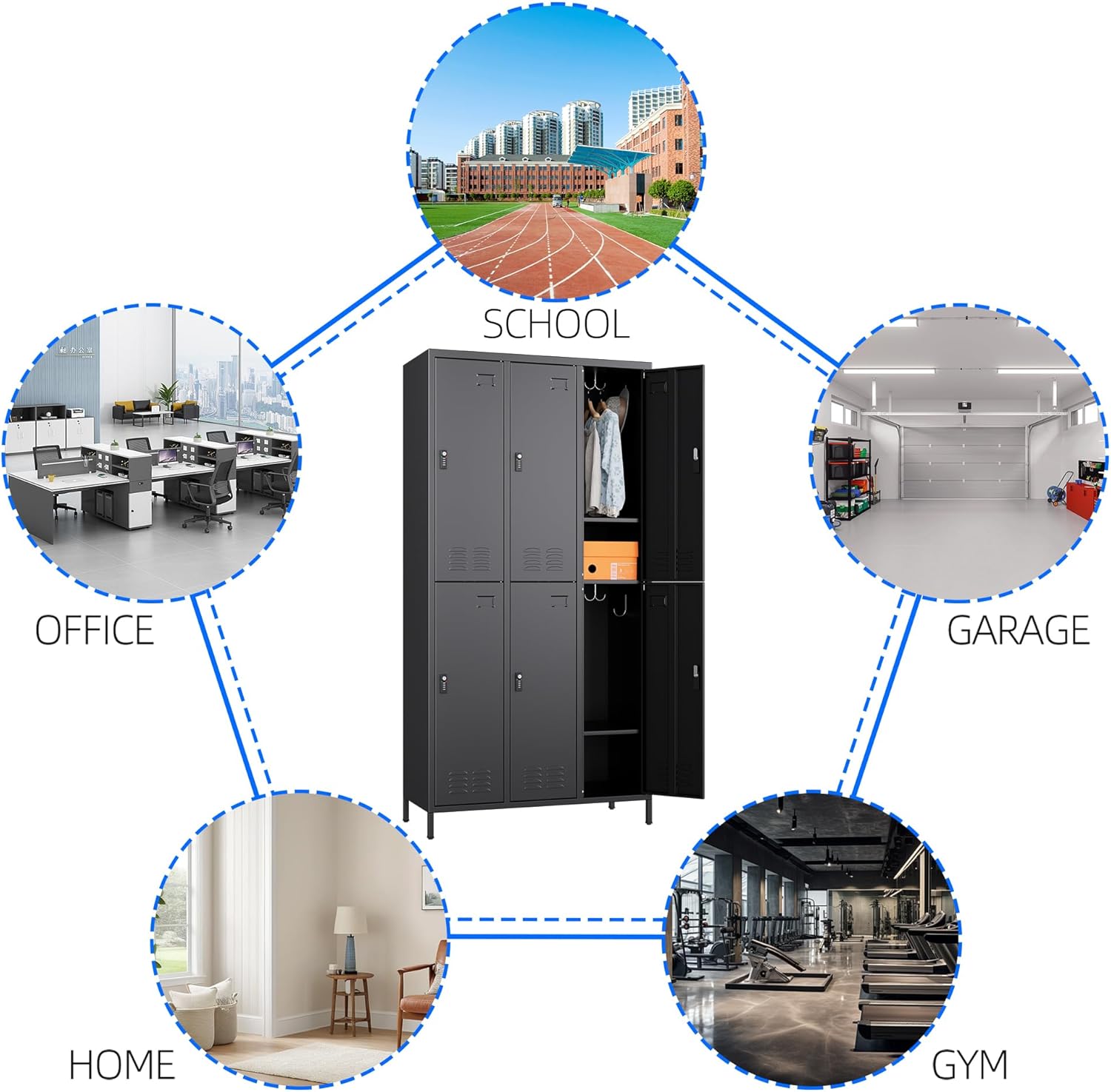 - ăComplimentary HooksăWe provide an additional 18 hooks for this 6 doors metal locker. There are reserved holes on the cabinet to install hooks for hanging small items such as scarves, hats, keys, bags, etc.