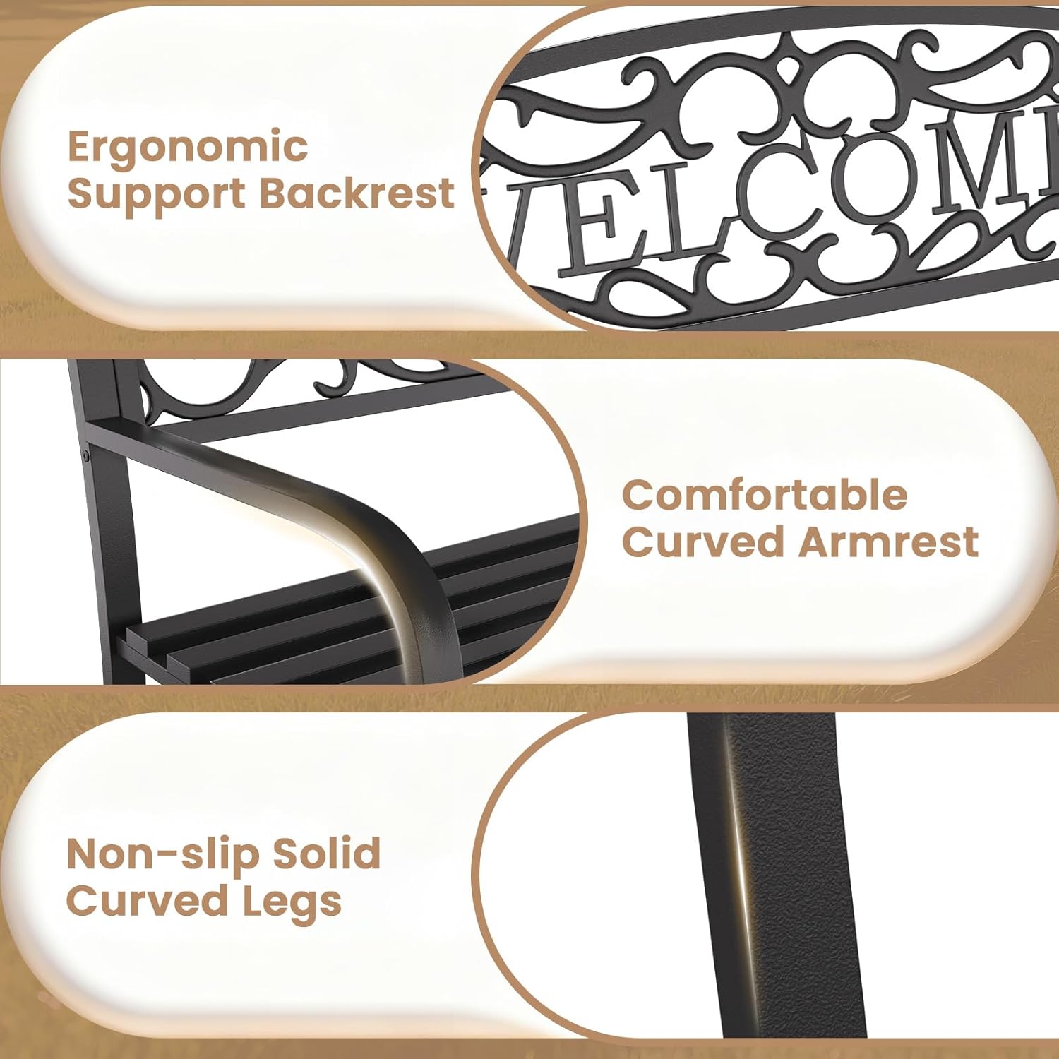 - 【Easy to Clean & Maintain】Anti-Rust The porch bench is crafted of multi-layer anti-rust & UV-resistant powder coated adding with tightly sealed joints, providing perfect protection against water and UV rays. No need require regular cleaning and maintenance, just a simple wipe keep it as clean as new.