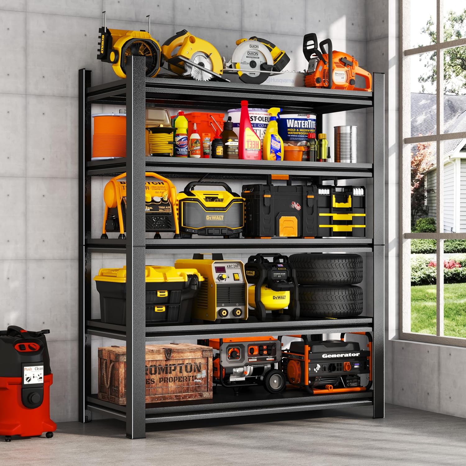 - Heavy Duty Garage Shelving Unit: Our garage shelves measure 78 inches in height, 36 inches in width, and 16 inches in depth. Our industrial garage shelving is crafted using advanced cold-rolled steel technology. Premium materials translate to superior quality, so you can rely on it for long-term use with complete confidence. Unlike flimsy plastic shelves or fragile wooden ones, this heavy duty garage storage shelves, with a load capacity of up to 3,000 pounds, are exactly what you need