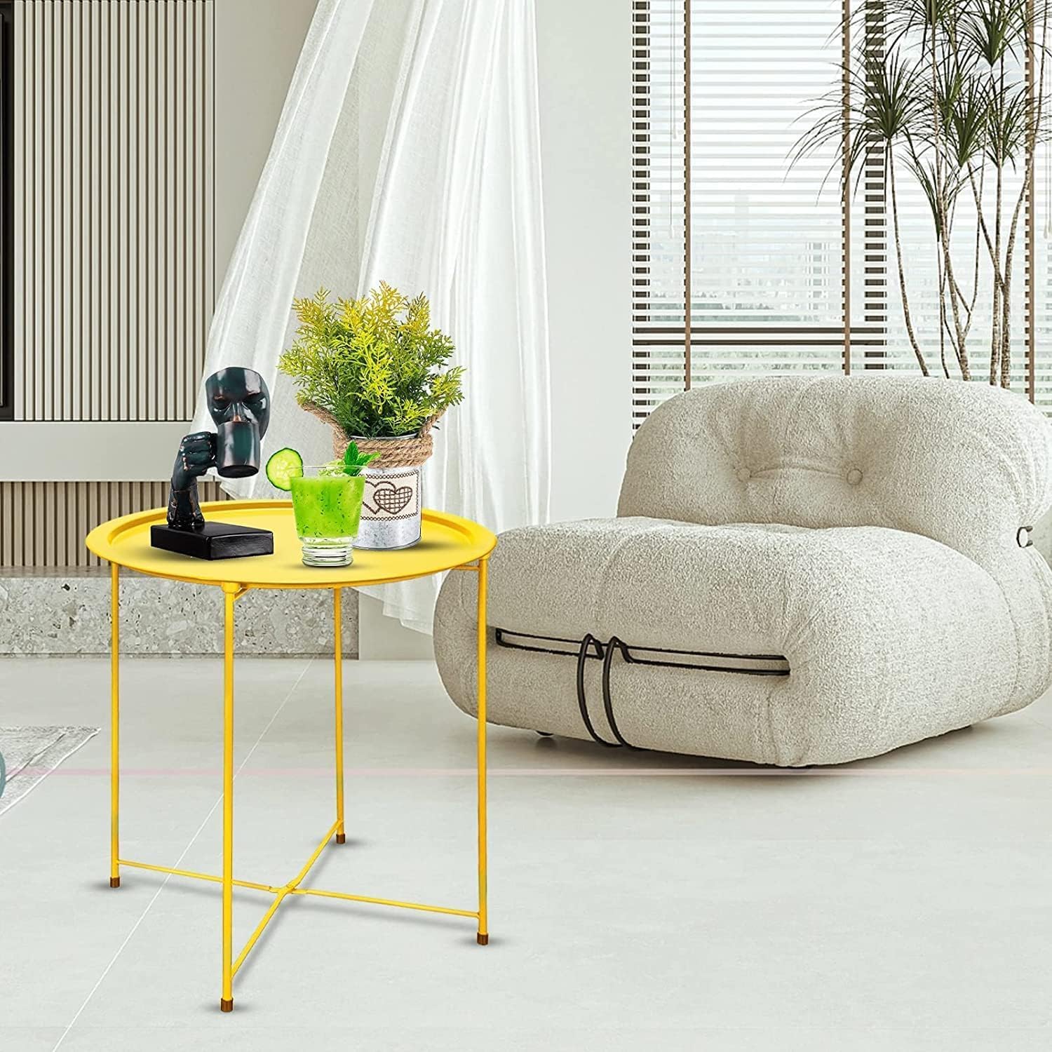 Garden 4 you Small Side Table, Round End Table, Outdoor Side Table with Metal Frame, Bedside Table for Living Room, Bedroom, Patio, Small Space, Yellow