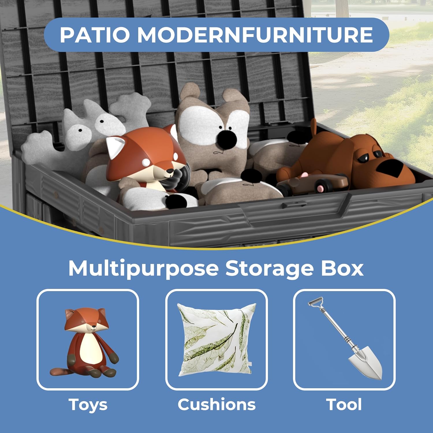 - Stylish Design That Complements Any Outdoor Decor Blending function with style, this patio storage box features a clean, timeless look that fits seamlessly with modern, coastal, or classic outdoor aesthetics. Available in neutral tones (beige, gray) that won’t clash with your patio furniture or landscaping, it doubles as a extra seating bench (supports up to 250 lbs) or a small side table—adding both utility and sophistication to your backyard, patio, or pool area.