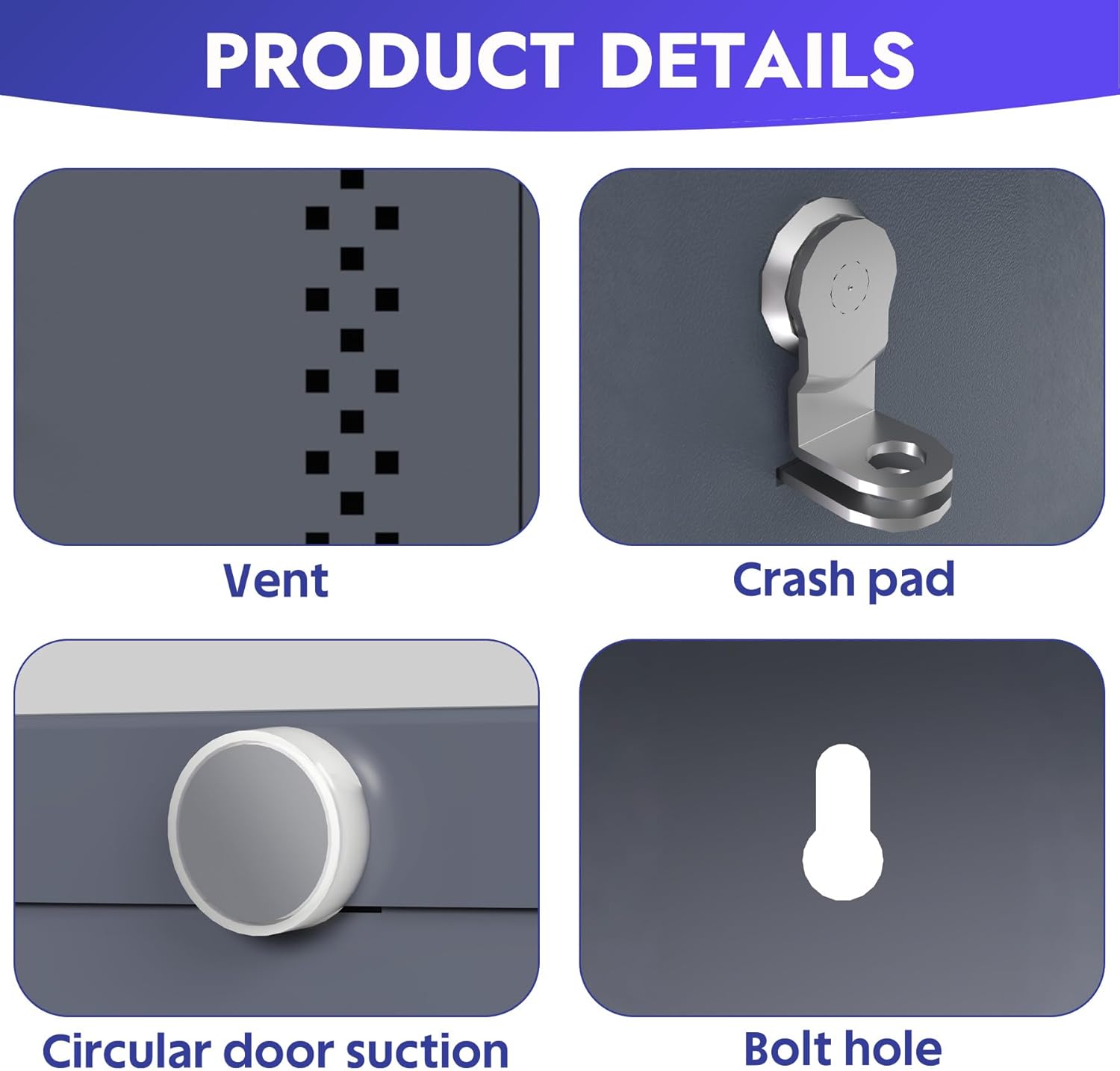 - 【Unique Design】 The door of the steel locker is equipped with ventilation holes and the ventilation holes help you keep the items dry and ventilated eliminating odor and moisture. Each locker compartment include a lift up handle and recessed hasp for added security and can accommodate built-in combination or key locks and combination or key padlocks
