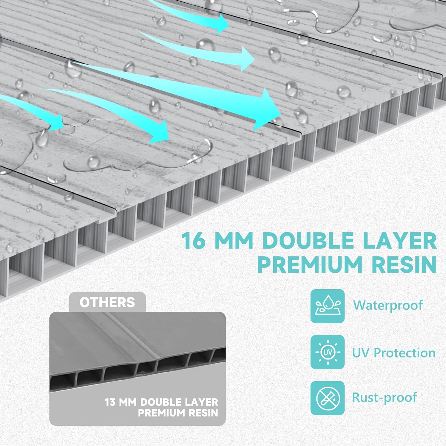 - Heavy-Duty Resin Construction – Crafted from high-quality resin, the shed offers exceptional durability and weather resistance, standing strong against UV rays, moisture, and temperature swings.