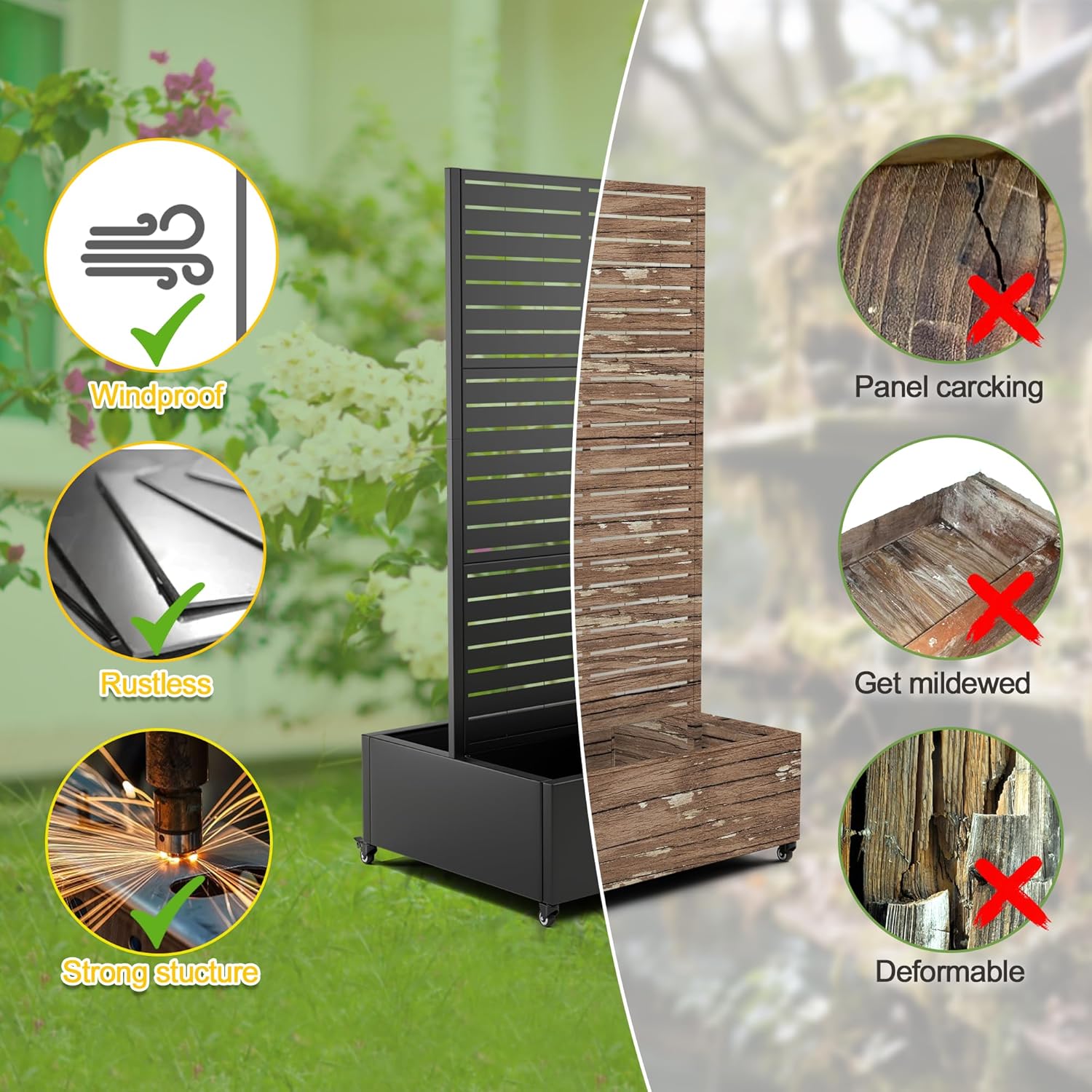 - 【Space-Saving Design】 With two planter boxes and a privacy screen in one compact unit, this design maximizes planting capacity without occupying extra space—perfect for balconies, patios, and small gardens.